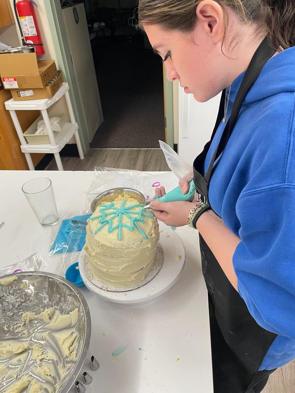 Unlike the commercial style kitchens at the other locations, AHS provides a familiar kitchen environment with it's 'home-economics' style setting. Everyone is paired off for each station (which includes prep area, stove, and sink) and will make 2 servings of the recipe of the class per station unless otherwise specified, i.e.: cake classes.