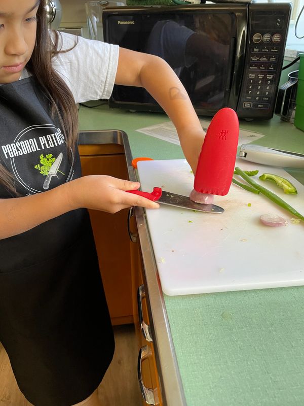 It’s Knife Skills Day! Chef will help guide their budding Chef Jrs to begin to develop their knife skills safely with a choice of plastic or curved ended knives with finger guards. Students will prep vegetables and learn about cross contamination and meat safety.