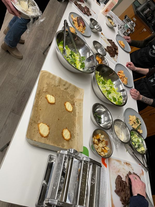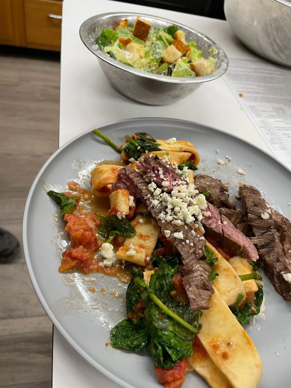 Its another delicious pasta night! Learn how to make pasta from scratch as well as techniques for purchasing a flavorful steak and how to remove the silver skin (what’s that?) Are you a well-done kind of person? Did you know the red isn’t blood? How about knowing when to stop if you don’t want your steak well? Join Chef Gina for the last cooking class of the 2025-2026 year!