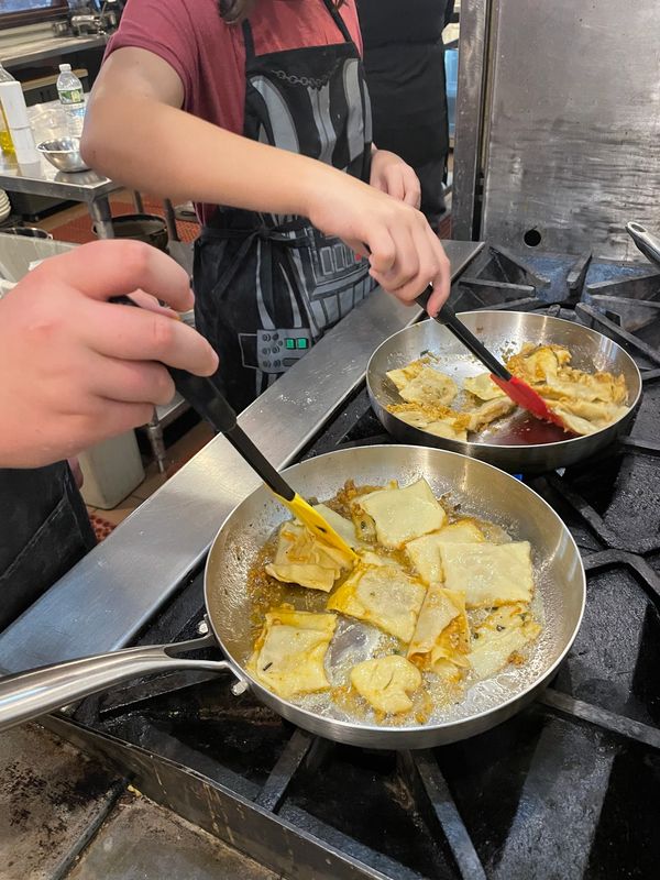 While the fresh dough rests, students will learn the steps to make cheese sauce from scratch, including a bechamel sauce. After the pasta is ready, we will then fill and pan fry wontons until crispy.