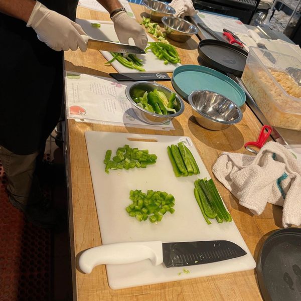 Although this is a beginner class, let's work on a few techniques: breading station, sauce making, cross contamination awareness,